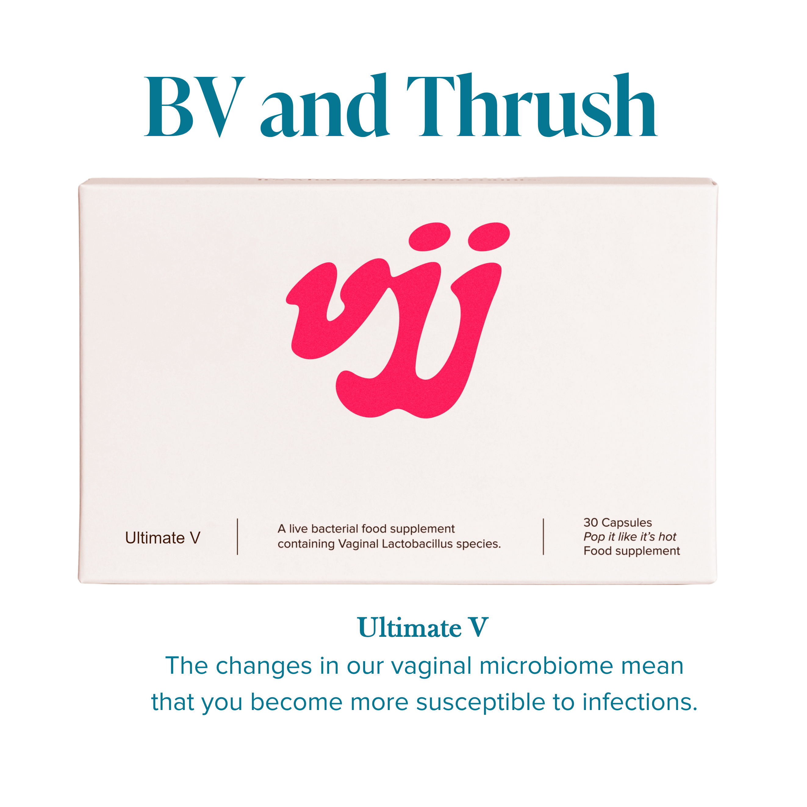 Vulvovaginal Atrophy (VVA) happens to all women when reduced oestrogen thins vaginal tissues and reduces natural vaginal lubrication, leading to symptoms like vaginal dryness, irritation, and discomfort. This is often treated with Hormone Replacement Therapy (HRT) or topical oestrogen (like Vagifem or Gina). This makes an environment where the protective bacteria can thrive to look after your vaginal health. Ultimate V contains the right blend of good bacteria for vaginal health.